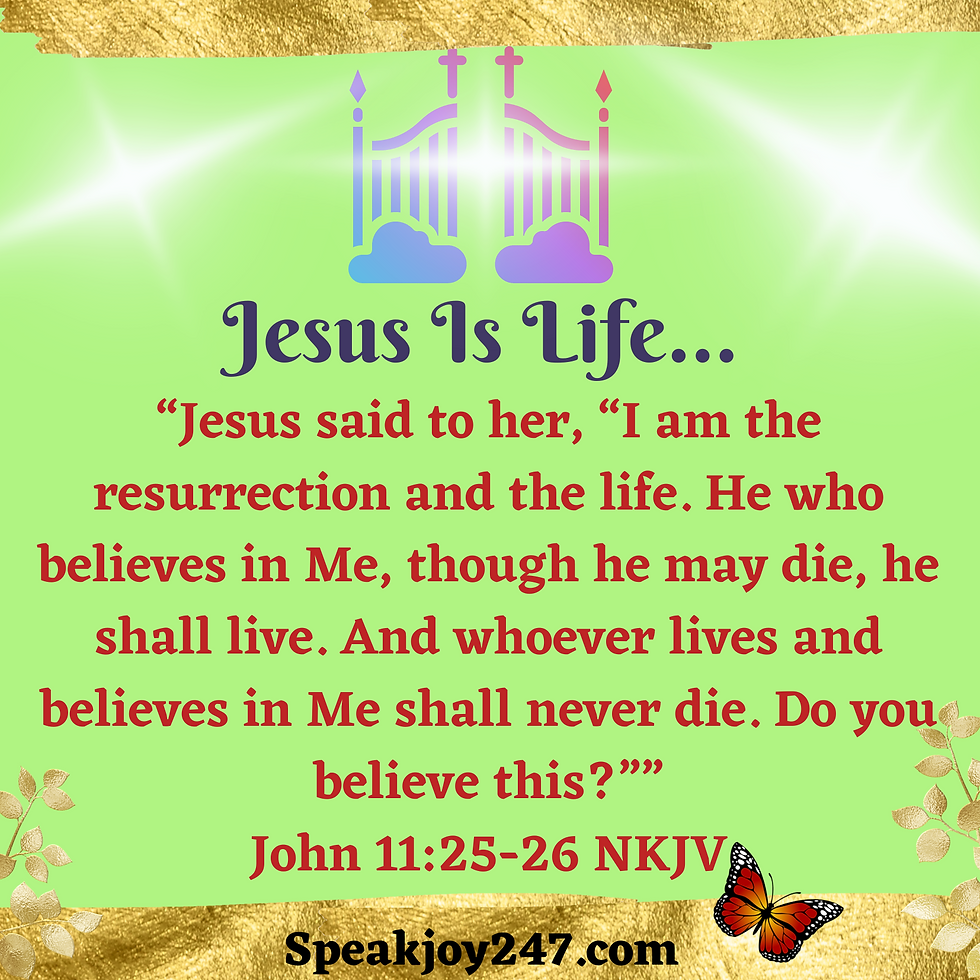 “Jesus said to her, “I am the resurrection and the life. He who believes in Me, though he may die, he shall live. And whoever lives and believes in Me shall never die. Do you believe this?””