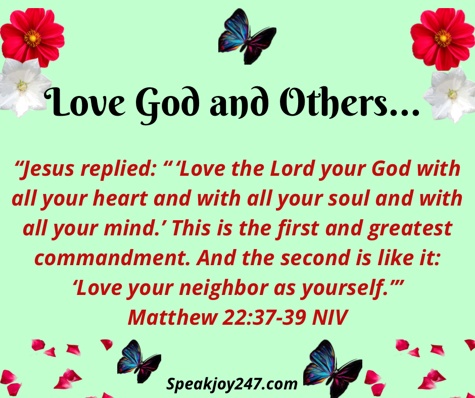 “Jesus replied: “ ‘Love the Lord your God with all your heart and with all your soul and with all your mind.’ This is the first and greatest commandment. And the second is like it: ‘Love your neighbor as yourself.’”